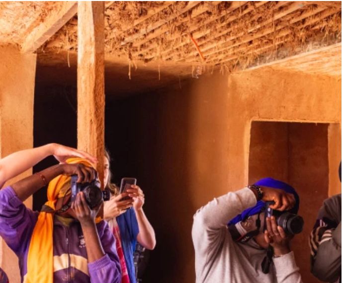 Dans le cadre des Résidences Creasen, un groupe de jeunes filles engagées dans l’équipe de construction a participé à des ateliers de photographie participative et de création de podcasts, animés par les photographes Marta Moreiras et Ina Thiam. Ces ateliers leur ont permis d’acquérir des compétences pour documenter le processus de construction écologique, mais aussi pour raconter leurs histoires, valoriser leur savoir-faire, et offrir une nouvelle image de leur territoire, de leur pays, et de l’Afrique.